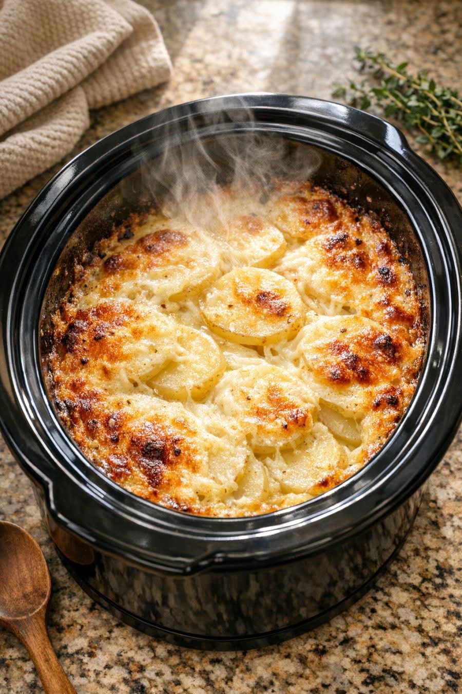 The Complete Recipe: 4-Ingredient Slow Cooker Sunday Scalloped Potatoes