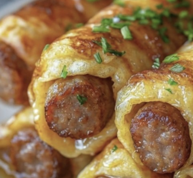 This recipe takes the classic “pigs in a blanket” concept—typically sausages wrapped in crescent roll dough—and gives it a breakfast twist by using homemade pancake batter. The result is a soft, fluffy exterior that perfectly complements the savory, slightly salty breakfast sausage inside.