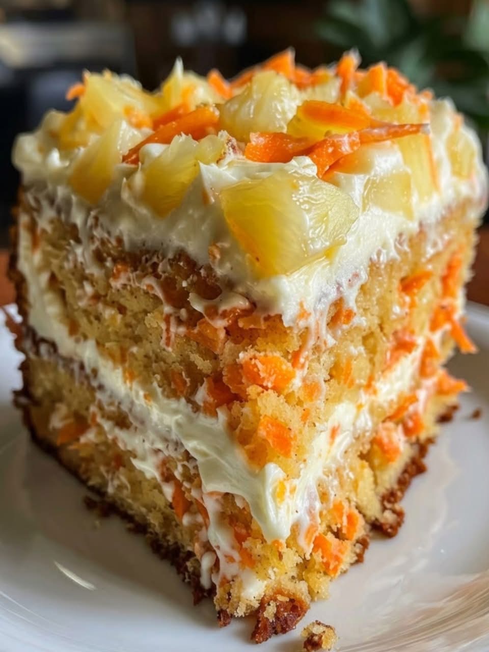 The pineapple adds natural sweetness and keeps the cake extra moist, while the carrots provide a tender texture and subtle earthiness. Finished with a creamy frosting, this cake becomes the perfect dessert for family gatherings, holidays, birthdays, or anytime you want a homemade treat.