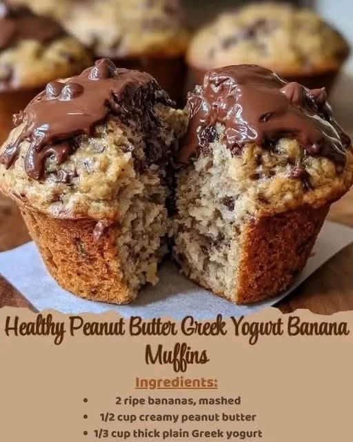 If you’re looking for a soft, protein-packed muffin that tastes like dessert, these Peanut Butter Greek Yogurt Banana Muffins with Gooey Chocolate Tops are the perfect treat. They combine ripe bananas, creamy peanut butter, and rich Greek yogurt to create incredibly moist muffins with a naturally sweet flavor.