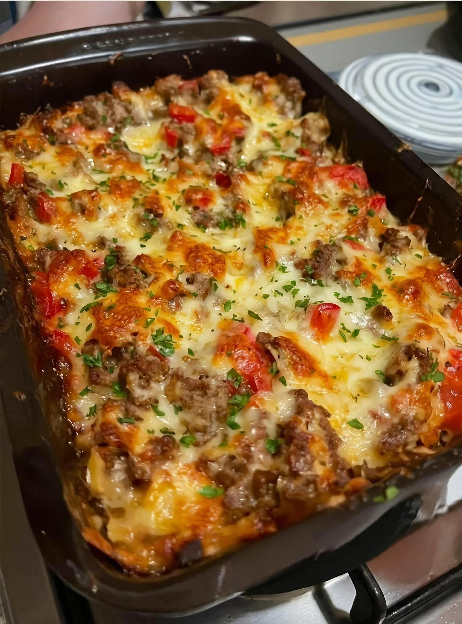 6. Egg-cellent Sauce: Whisk together the eggs, heavy cream, and Worcestershire sauce. Pour over the meat mixture.