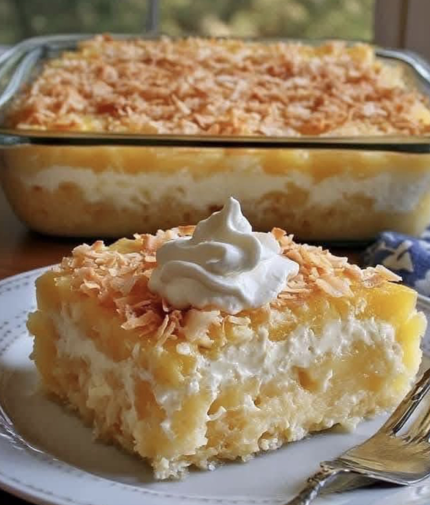 Pineapple Coconut Dream Cake is a tropical-inspired dessert that brings together the bright sweetness of pineapple and the creamy richness of coconut in every bite. Light, moist, and perfectly balanced, this cake feels like a slice of paradise—whether you’re serving it for a celebration or simply indulging a sweet craving.