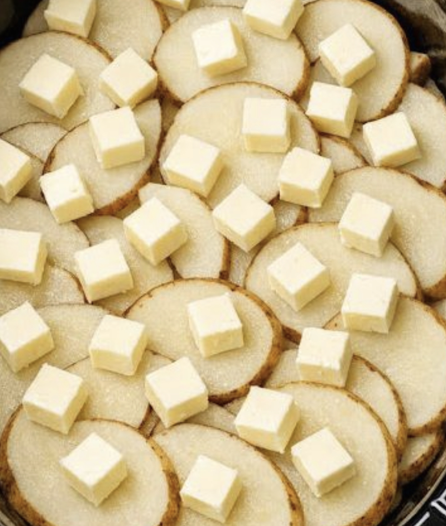 • 3 lbs (1.4 kg) russet potatoes, peeled and thinly sliced (⅛–¼ inch)