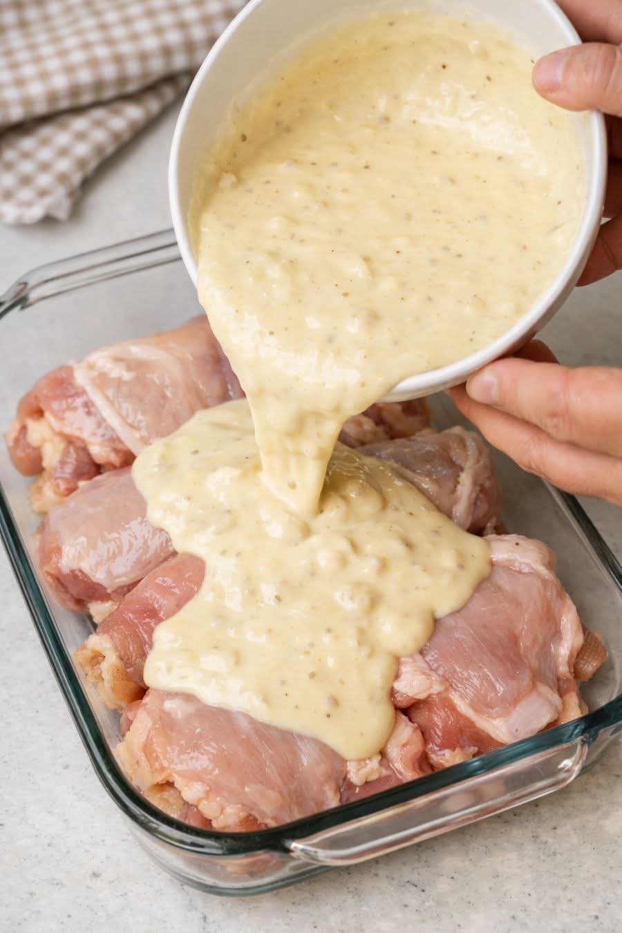 Love factor: one-bowl sauce, no extra pan gravy, and thighs stay tender even if you’re distracted. Use bone-in thighs for flavor; patting them dry prevents steaming. Placing them in a single layer lets sauce circulate. For richer gravy, swap part of the milk for half-and-half or stir in a tbsp butter. If sauce looks thin after baking, let it rest—the starches tighten up. Check temp in the thickest part, away from bone.
