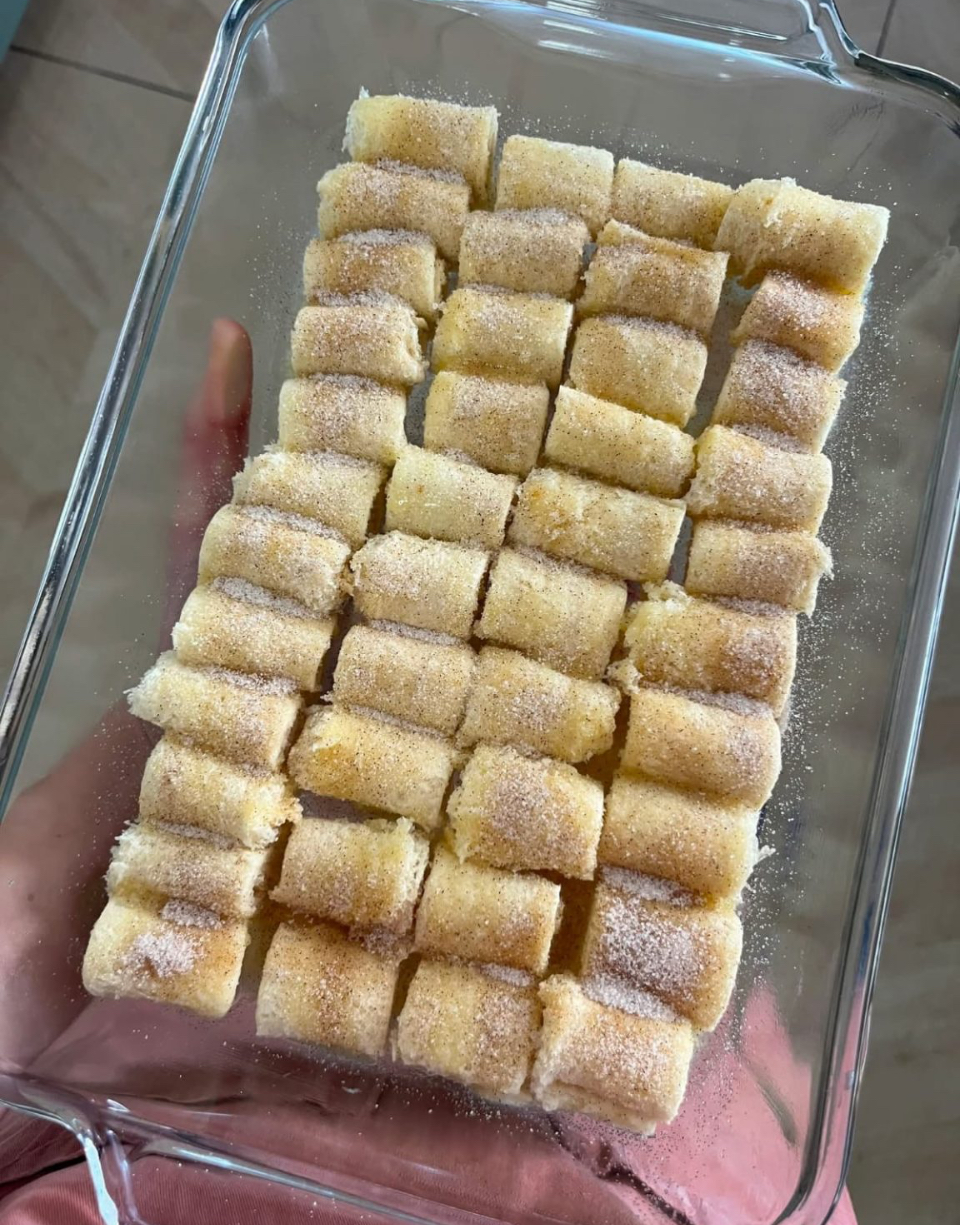 Roll dough into a rectangle. Spread sugar filling evenly. Roll tightly into a log and slice into 1½-inch pieces. -