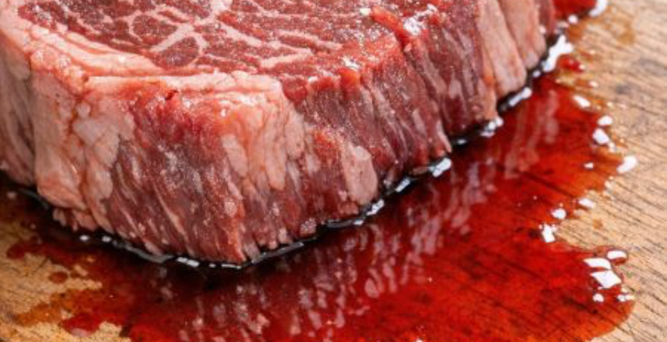 Myoglobin is what gives beef its red color. When it mixes with water, it can look very similar to blood — but it isn’t.